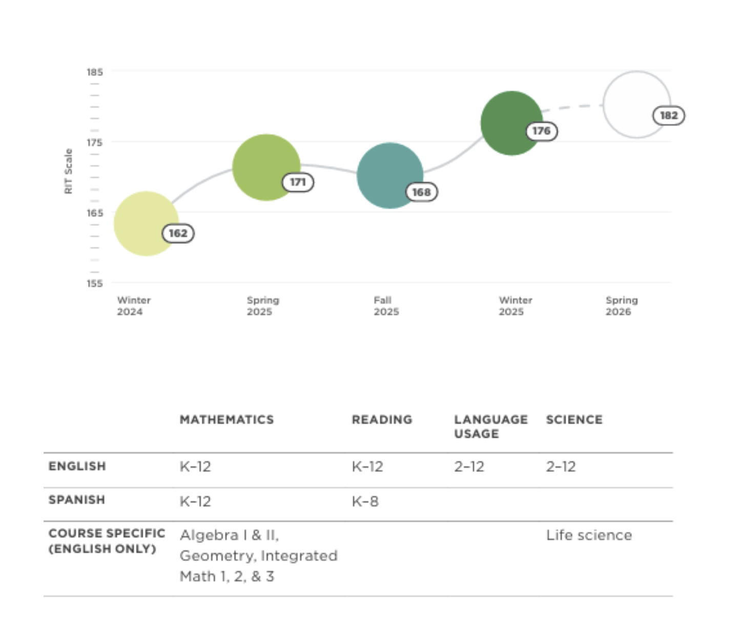 - RIT 점수와 Percentile Rank, Norms를 함께 참고하여 해석해야 정확함
