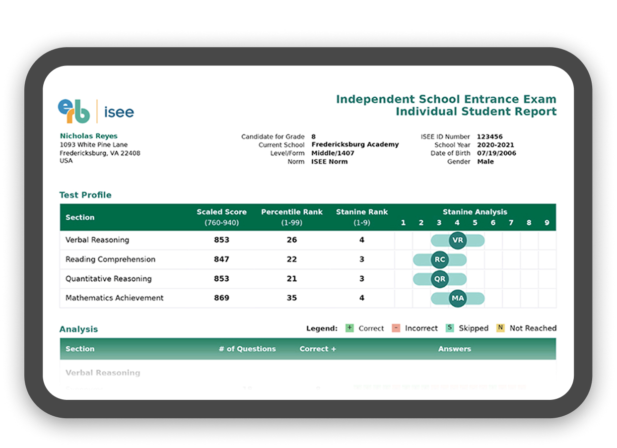 공식 모의고사 결과를 ISEE 전문 컨설턴트가