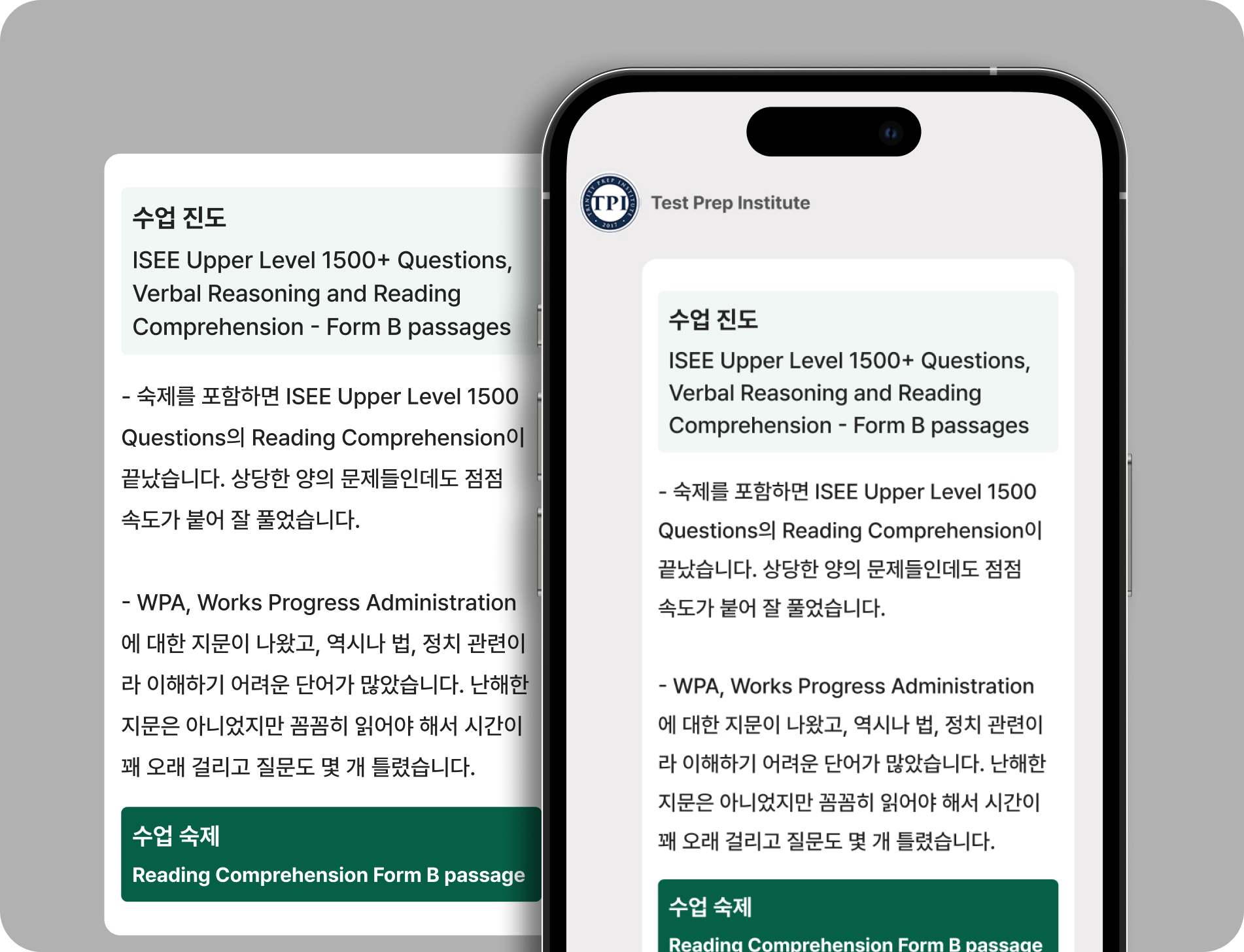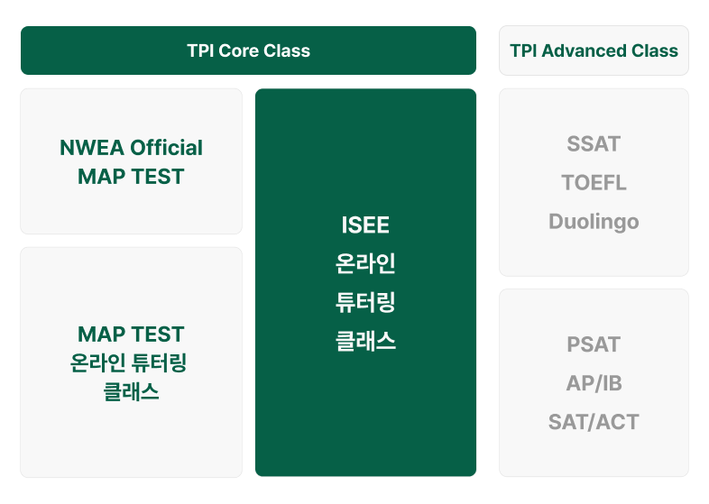 TPI는 국내 최대 규모의 ISEE 실전 문제 자료와 전문적이고 체계적인 ISEE 온라인 튜터링을 제공하여,
